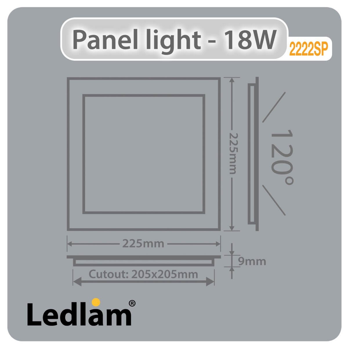 LED Panel Light 18W Square 2222SPD – dimmable