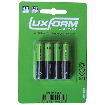 Luxform Lighting AAA Rechargeable Battery – 800 mAH NimH 1.2V – Pack of 4