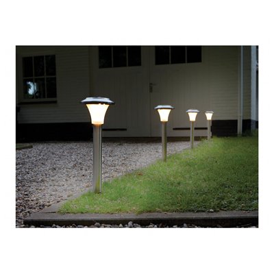This light is suitable for the illumination of walkways and darkened areas at night, it is ideal for marking along driveways, garden paths, terraces and porches. This light features an on/off switch and a dusk/dawn sensor which ensures the light will be switched on at dusk and will automatically shut off at dawn. A ground spike is supplied so that the light can be easily placed into soil. This high lumen solar light has a higher number of lumens relative to a normal solar light. Please remember that stainless steel is not a maintenance free product and that you need to clean the lights every 6 months to prevent discolouration.