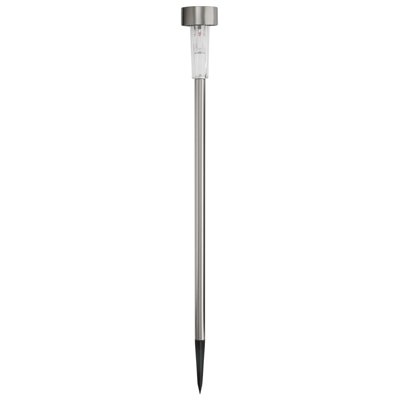 Decorate your outdoor living space even in remote areas by placing these stylish lights in a sunny spot, they will enhance the look and feel of any garden. This solar light is made from durable stainless steel and can also be used to provide ambient light sufficient to illuminate paths, borders and driveways etc. The light has an on/off switch and an integral solar panel. This attractive IP44 rated energy saving LED Solar spike light uses the integral solar panel to recharge the AA battery throughout daylight hours using free energy from the sun, once charged it will provide up to 8 hours of light. When dusk falls, the light will automatically turn on and turns off again at dawn. This particular light utilises both soft tone and colour changing RGB-LEDs. Easy to install with no wiring required, just use the supplied spike and push into the ground!