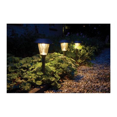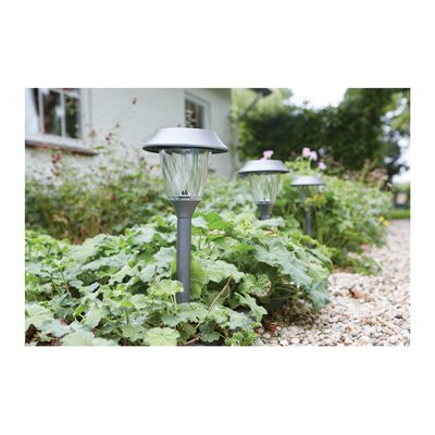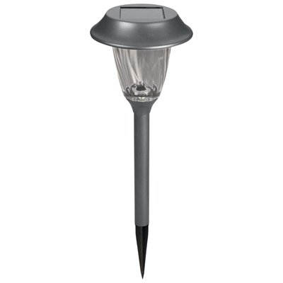 Decorate your outdoor living space even in remote areas by placing these stylish lights in a sunny spot, they will enhance the look and feel of any garden. This solar light is made from durable stainless steel and can also be used to provide ambient light sufficient to illuminate paths, borders and driveways etc. The light has an integral solar panel. This attractive IP44 rated energy saving LED Solar spike light uses the integral solar panel to recharge the AA battery throughout daylight hours using free energy from the sun, once charged it will provide up to 8 hours of light. When dusk falls, the light will automatically turn on and turns off again at dawn. Easy to install with no wiring required, just use the supplied spike and push into the ground!