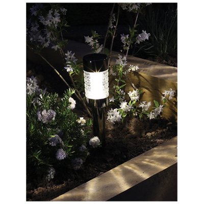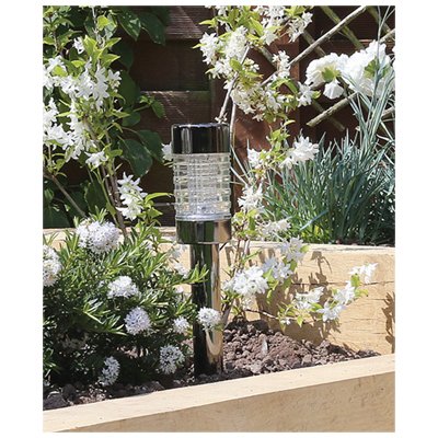 Decorate your outdoor living space even in remote areas by placing these stylish lights in a sunny spot, they will enhance the look and feel of any garden. This solar light is made from durable stainless steel and can also be used to provide ambient light sufficient to illuminate paths, borders and driveways etc. The light has an integral solar panel. This attractive IP44 rated energy saving LED Solar spike light uses the integral solar panel to recharge the AA battery throughout daylight hours using free energy from the sun, once charged it will provide up to 8 hours of light. When dusk falls, the light will automatically turn on and turns off again at dawn. Easy to install with no wiring required, just use the supplied spike and push into the ground!