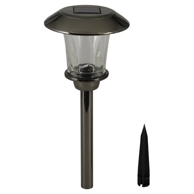 Decorate your outdoor living space even in remote areas by placing these stylish lights in a sunny spot, they will enhance the look and feel of any garden. This solar light is made from durable stainless steel and can also be used to provide ambient light sufficient to illuminate paths, borders and driveways etc. The light has an integral solar panel. This attractive IP44 rated energy saving LED Solar spike light uses the integral solar panel to recharge the AA battery throughout daylight hours using free energy from the sun, once charged it will provide up to 8 hours of light. When dusk falls, the light will automatically turn on and turns off again at dawn. Easy to install with no wiring required, just use the supplied spike and push into the ground!